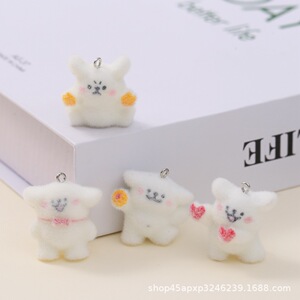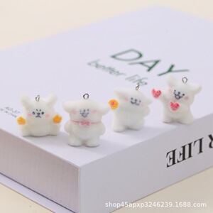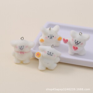 植毛ペンダント、クリエイティブでかわいい小さな白い犬のライン、子犬の装飾アクセサリー、ミニカーデスクトップ装飾品