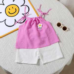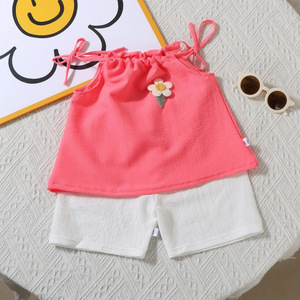 子供用サスペンダースーツノースリーブサスペンダーベビーガールスペースコットンショーツノースリーブ韓国風ツーピースベビーホーム服