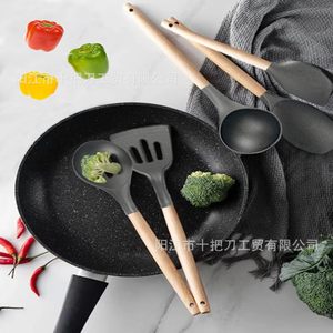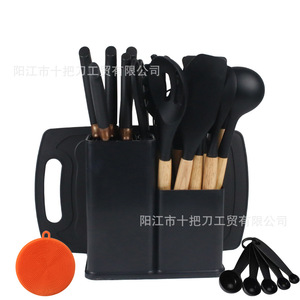 クロスボーダー木製ハンドルシリコンキッチン用品セットナイフ組み合わせ高温耐性スプーンノンスティックスパチュラ収納バケツ家庭用25点セット