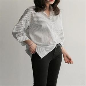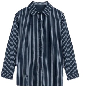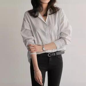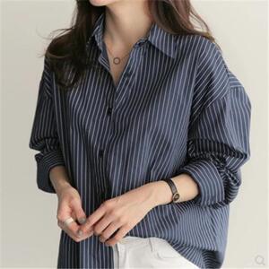 2025 春夏新スタイルミドル丈多用途ルーズブルー縦ストライプ大きいサイズ長袖シャツ女性の夏多用途