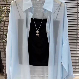 ファッショナブルで多用途な中国風のアイスシルク長袖日焼け止めシャツ 2025 夏の新しい女性のアウタールーズトップシャツ