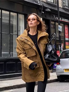 ZA ヨーロッパとアメリカのクロスボーダーレディースウェア 2025 快適なカジュアルワークウェアスタイルの立体ポケット装飾多用途ウエストスタンドカラージャケット