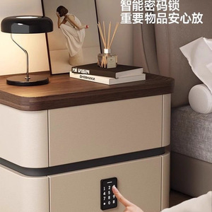 高級ベッドサイドテーブル無垢材多機能ロック付きインストール不要の寝室ホーム収納ベッドサイドテーブルインストール不要のオールインワン