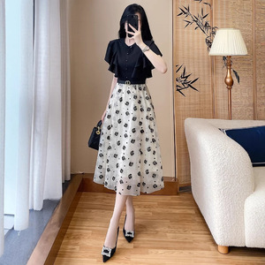 2025 新しい夏の女性のハイウエストスリムロングスカートティーブレイクフレンチスタイル多用途スプライシングノースリーブドレス
