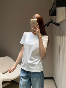 25 夏新作 Loe フレッシュカレッジ風レター刺繍重工業中空半袖レディース Tシャツ