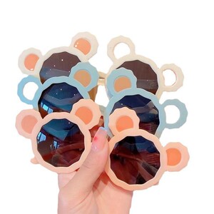 子供用サングラス、クマ耳付き、かわいい日焼け止めメガネ、男の子と女の子向け、ファッショナブルでクールなおもちゃ、卸売サングラス、漫画風