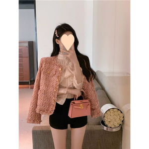 大码胖气质名媛小香风粉色短外套女春装显瘦宽松遮肉洋气上衣