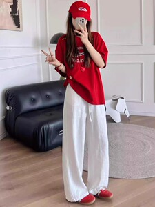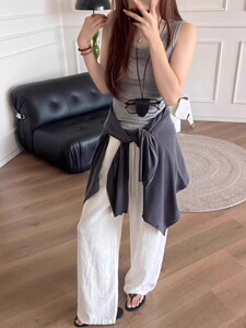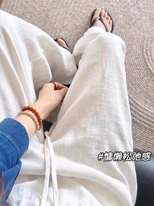 ホワイトリネンワイドレッグパンツ女性の夏薄い 2025 新しいオールドマネースタイルハイウエストストレートアイスシルクカジュアルパンツ