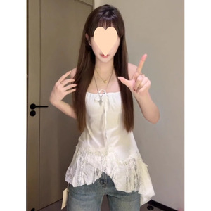 プラスサイズのフレンチスイート不規則な白いキャミソール女性の夏の太ったMMは肉をカバーして痩身レースバットカーテントップ
