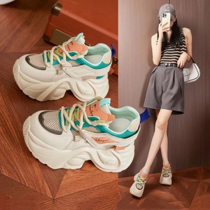 女性用ダッドシューズ 2025 春夏新作厚底小柄メッシュ通気性プラットフォームインナー高さ向上スポーツシューズ女性用