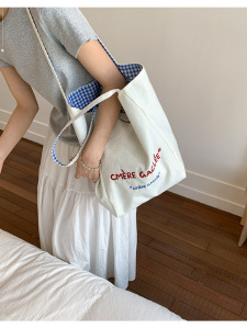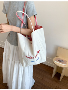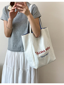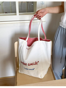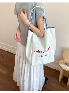クロスボーダー正反両面ストライプショルダーバッグ大容量トートバッグ高品質刺繍学生キャンバス通勤バッグ
