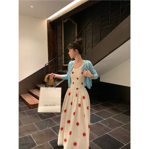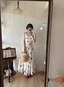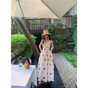 正しいバージョン!サマーポエムフレンチバケーション水玉模様Uネックノースリーブベストドレス
