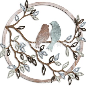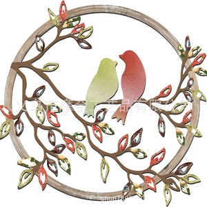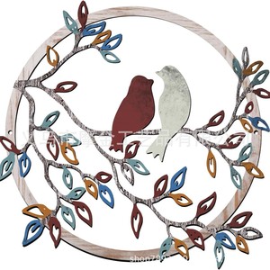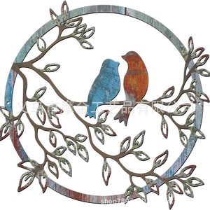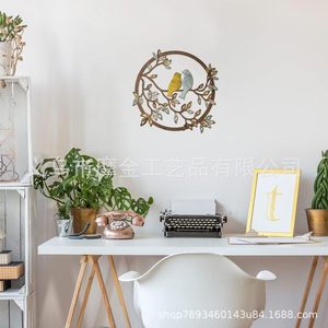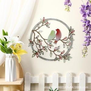 クロスボーダー工芸品アイアンアートラウンドラブバードシルエットリビングルームの装飾装飾品ライト高級スタイルメタルホームデコレーション