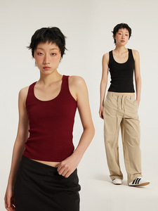 JIE ZHAN WOMEN'S | 高弾性糸入りUネックベスト25春夏無地高弾性スリムベーシックカジュアルサスペンダーボトリングシャツ