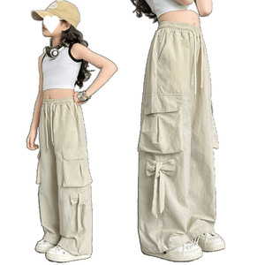 女の子オーバーオール夏薄い 2025 新しい子供の夏防蚊パンツ大きな子供ジャズダンスワイドレッグパンツトレンディな