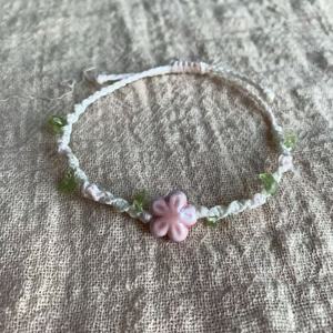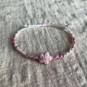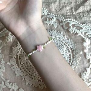 【新スタイル】春の妖精桜 マクラメ編みブレスレット 完成品