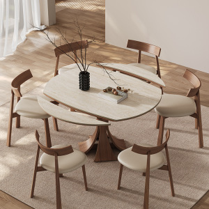 フレンチレトロミッドセンチュリースタイル伸縮式スレートダイニングテーブルモダンシンプルな小さなアパート無垢材トラバーチンスレートスリムダイニングテーブル