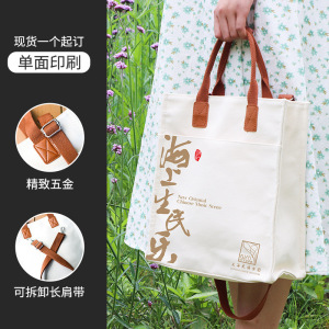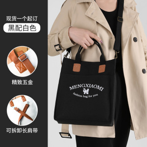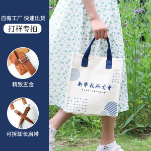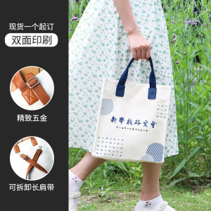 ロゴ柄のカスタムプリントが施されたキャンバスバッグ、斜め掛けの外ポケット、おしゃれな手持ちキャンバスバッグ、環境に優しく、シンプルで収納可能