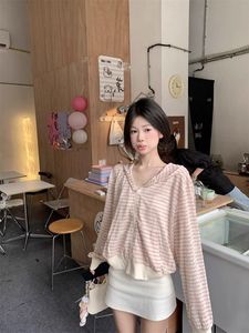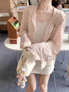 【自社工場在庫あり】スイートリボンプリント ピンクストライプ カーディガン ジャケット レディース 小柄トップス