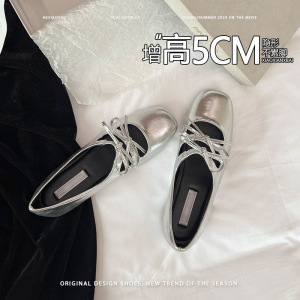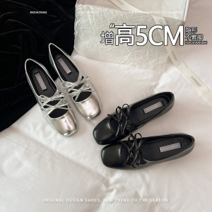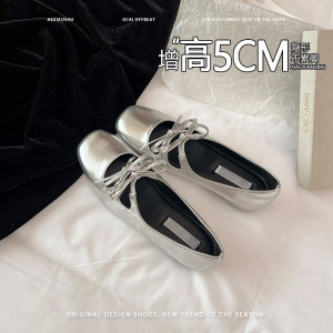 シープスキンインナー高さボウメリージェーンシューズ 2025 気質レディースシューズラウンドトゥソフトソールシルバーバレエスタイルシューズ女性用