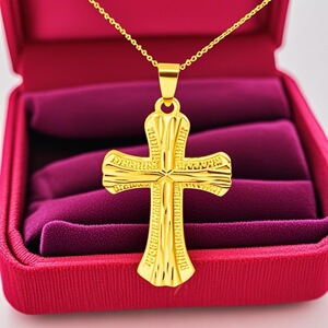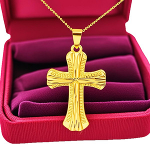 沙金镀金竹节十字架吊坠项链饰品时尚简约颈饰项链男女情侣款礼物