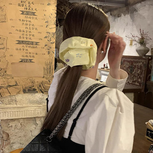 ジェリービーンズとライスビーズ!ミルクイエローの手作りビーズフラワーヘアリング、ハイエンドポニーテールゴムバンド、ヘアアクセサリー