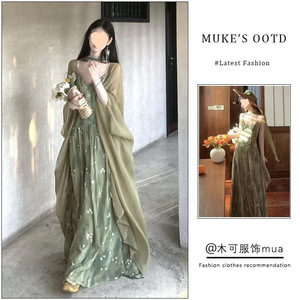 女性のためのスーツ 2025 夏の新しいフレンチスタイルの優しい休暇花柄 V ネックグリーンサスペンダードレス日焼け止めカーディガン