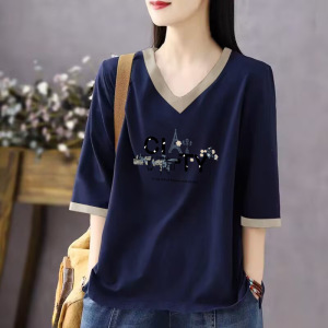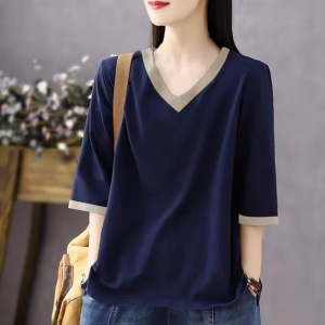 貿易クリアランス輸出綿100%半袖Tシャツレディース夏ゆったり大きいサイズお腹カバーカジュアル痩身トップス