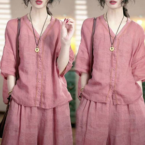 高級軽い高級ファッション年齢軽減スーツ春と夏の新しい気質ルーズでスリムな万能トップス+パンツ