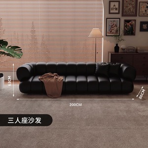 ブラックレトロストレートソファリビングルームホテルオフィスレセプションビューティーサロン衣料品店休憩エリアインターネットセレブソファ