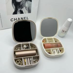 ポータブルミラージュエリーボックス口紅ハンドジュエリー収納ボックスイヤリングイヤリングネックレスリング防塵整理ボックス