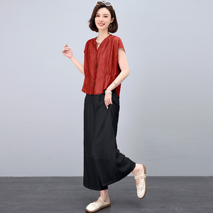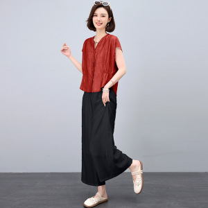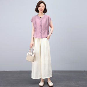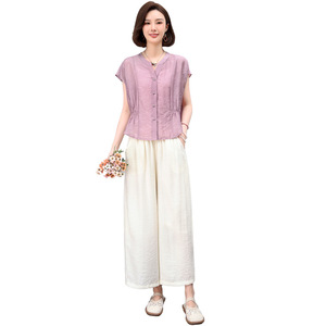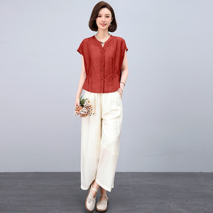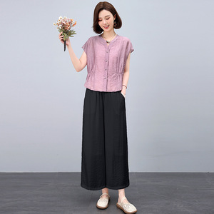 ママの夏のファッションスーツ 2025 新しい大きいサイズ西洋スタイルスリムテンセル半袖シャツワイドレッグパンツ 2 点セット