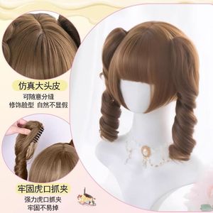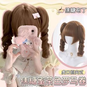 女性用ウィッグ、前髪ローマンカーリー、ロリータドリームソースドール風ローマンカーリー、虎口クリップ、ナチュラルポニーテール、フルヘッドギア