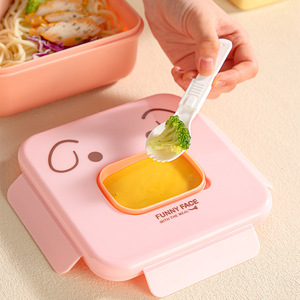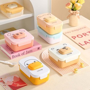 学生や会社員向けのかわいい漫画のかわいいランチボックス、プラスチック製のランチボックス、携帯用ランチボックス、カトラリーとソースボックス付き