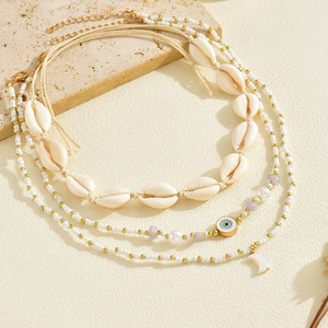 パールネックレス卸売ヨーロッパとアメリカのクロスボーダーネックレスセット女性のビーチリゾートスタイルシェルネックレスライト高級ニッチジュエリー