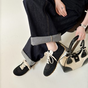 [トップボード] Liu Wenと同じスタイルのレトロな本革カラーブロックフォレストシューズ女性用25フラットレースアップカジュアル道徳トレーニングシューズカップル用