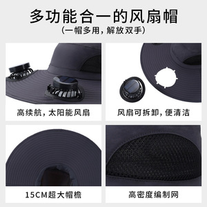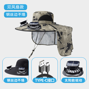 ソーラーサンシェードファンハットメンズ夏の屋外登山釣り帽子通気性速乾性日焼け止め帽子クロスボーダーホットスタイル