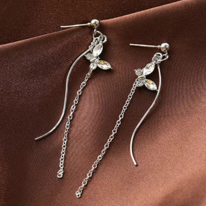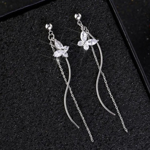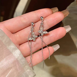 925 シルバー針スーパーフラッシュ気質ダイヤモンドクリスタルバタフライウェーブイヤリングインターネットセレブロング S 字型チェーンタッセルイヤリング女性用