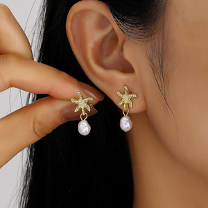 新しいヨーロッパとアメリカのシンプルなヒトデのイヤリングとイヤリングアクセサリー気質海洋スタイルのファッショナブルな女性のイヤリング卸売ファッションタッセルダイヤモンドヒトデシェル模造真珠のイヤリング女性のハイエンド