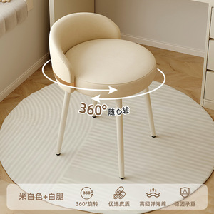 【360度回転可能な白脚】オフホワイトの化粧スツール
