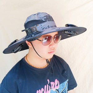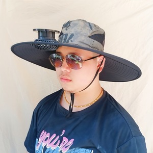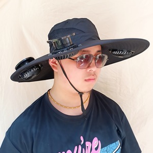 ソーラーファン付き帽子、一体型釣り帽子、男性用アウトドア登山帽子、ファン付き帽子、600mAh、スチールリング付き