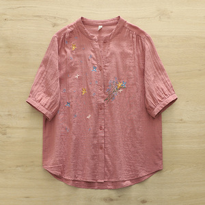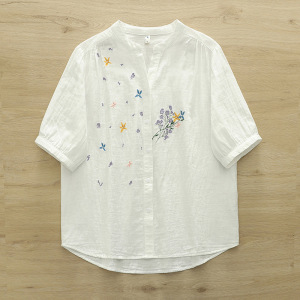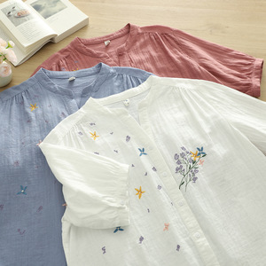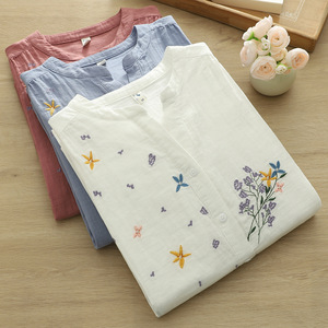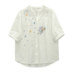 2025 夏の新刺繍小花二層糸レディースカーディガン半袖綿糸シャツ卸売トレンド