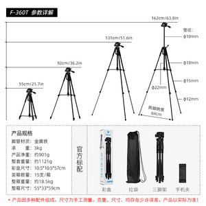Fシリーズプロの写真撮影ビデオ映画携帯電話ライブブロードキャスト三脚ポータブル三次元雲台一眼レフカメラ三脚