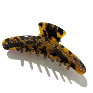 ヨーロッパとアメリカのクロスボーダーダイヤモンドがちりばめられた本物のアセテートシャーククリップ、ハイエンドの半月型の妖精べっ甲色の後頭部ヘアクリップ