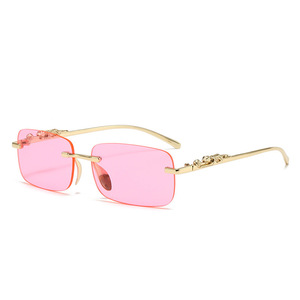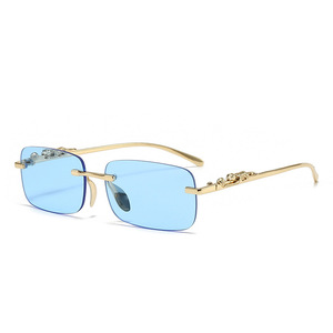 メタルフレームレススクエアサングラスカラーレンズ抗 UV サングラスチーター装飾フォトクロミックサンシェードミラーファッション