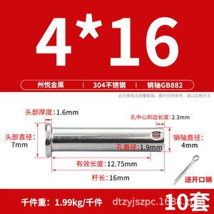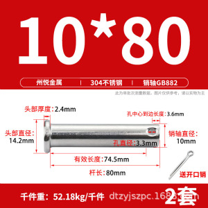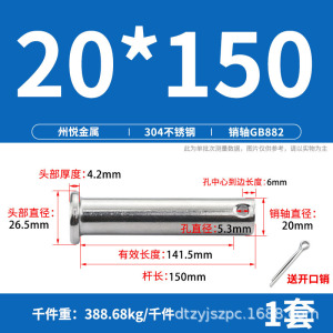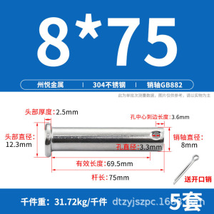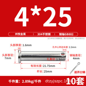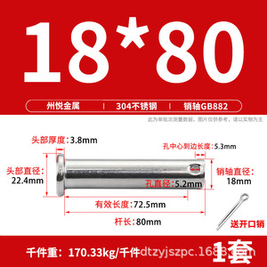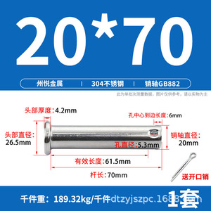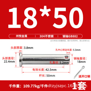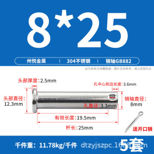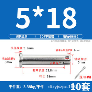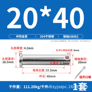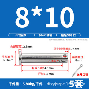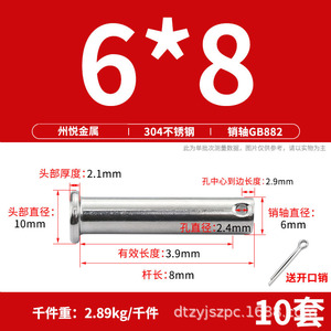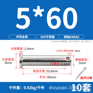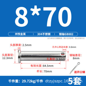 不锈钢销轴销子圆柱厂家加工平头带孔插销定位销钉固定销子圆柱销
