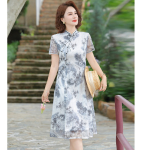 ママの夏服新しい中国風改良チャイナドレス女性の新しい中高年女性の夏半袖カジュアルスカート