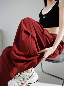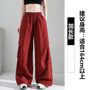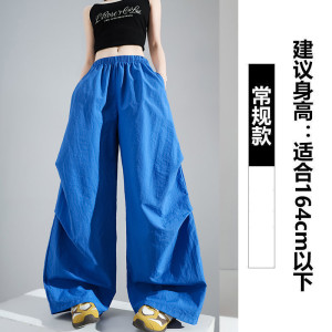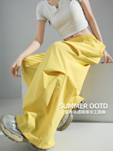 夏用の女性用黄色のスポーツオーバーオール、薄手、カジュアル、ルーズ、ドレープ、小柄な人向けのハイウエスト、スリムなパラシュートワイドレッグパンツ