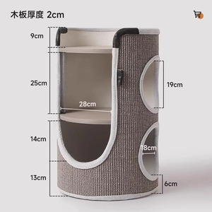 Hoopet 猫クライミングフレーム、小型、スペースを占有しない、家庭用猫スクラッチボード、一体型上下二層ツリーハウス猫の巣、サイザル麻バケツ