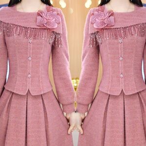 シングル/セット Xiaoxiangfeng ファッション春と秋の新しいスタイルのスリムで肉感のあるトップとハーフスカートの 2 点セット